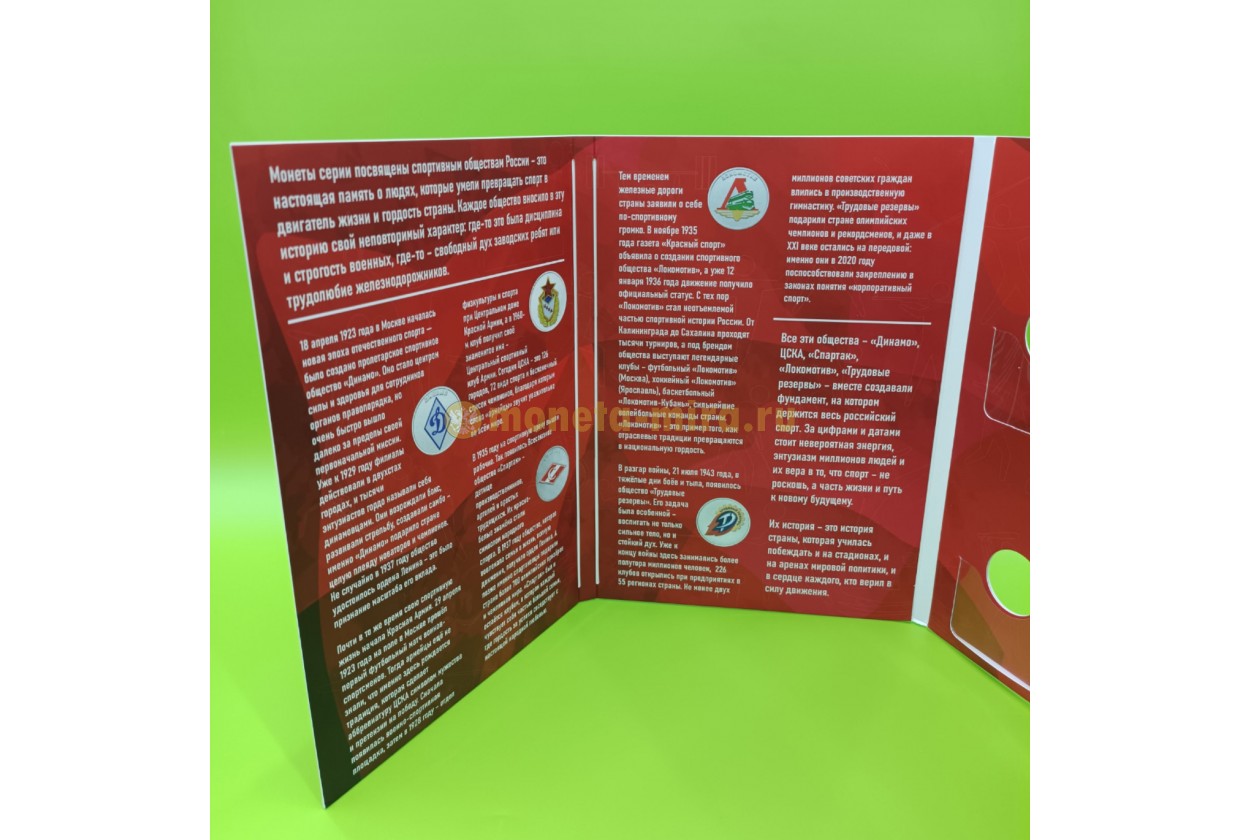 Альбом предназначен для хранения 5 юбилейных монет в блистере 2025 г. серия "Спортивные клубы России".