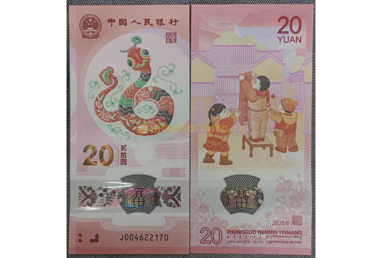 20 юаней Китай 2025 г. год змеи - полимер
