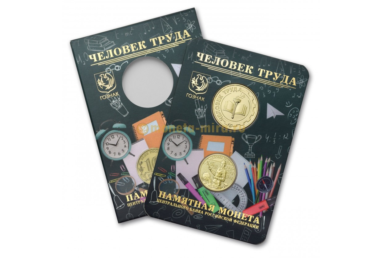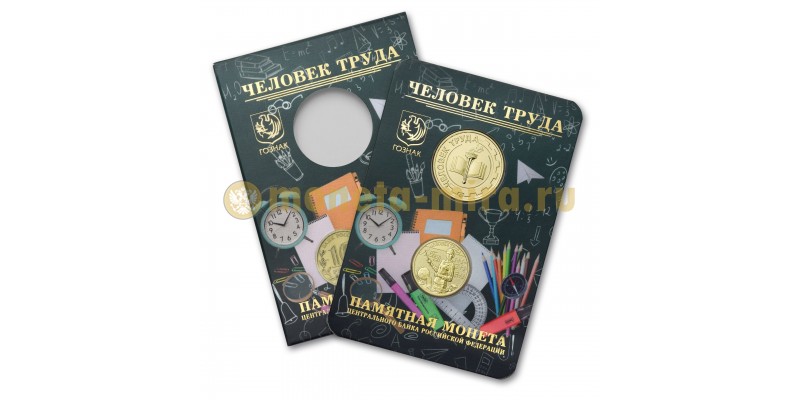 Официальный буклет ГОЗНАК с монетой 10 рублей 2024 г. Человек труда, Учитель и жетоном ММД.