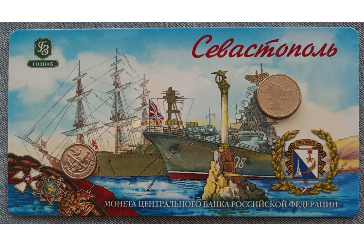 10 рублей 2014 г. Севастополь, в официальном буклете с жетоном СПМД
