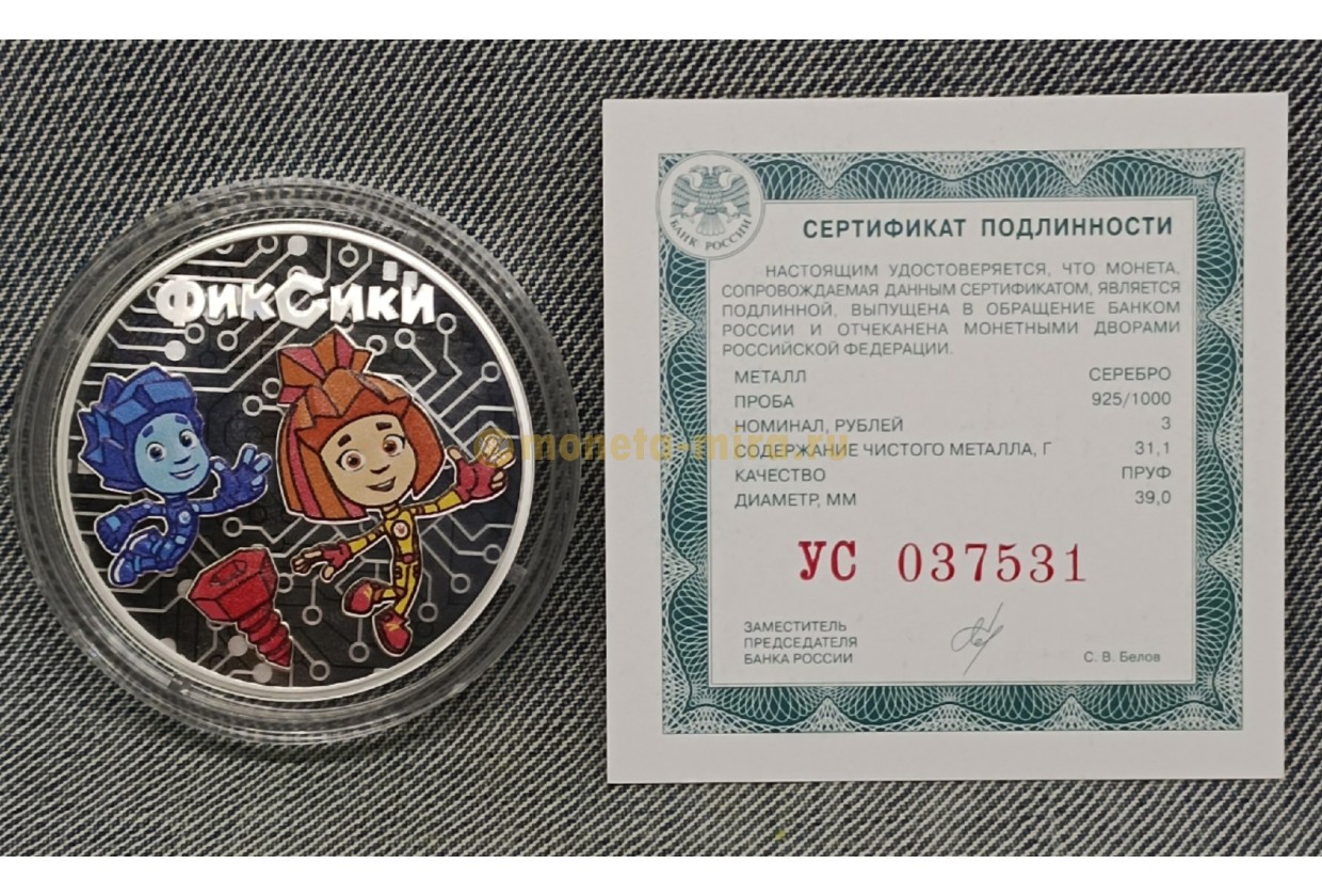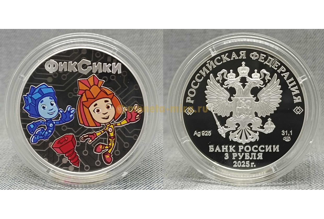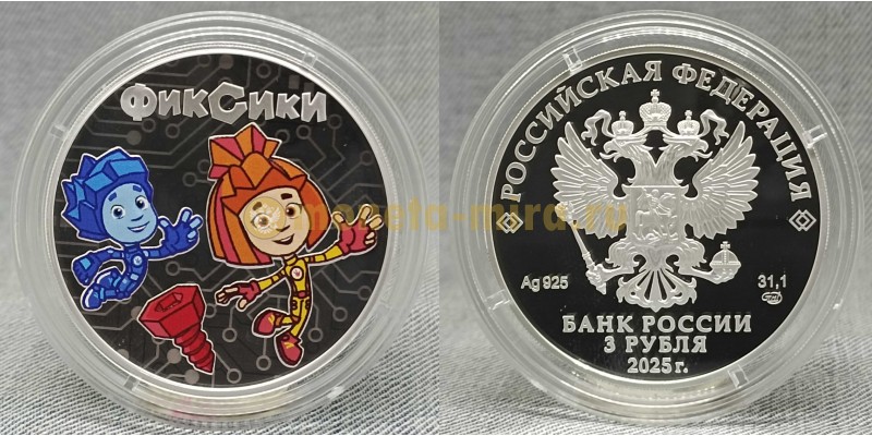 3 рубля 2025 г. Фиксики, серебро 925 пр.
