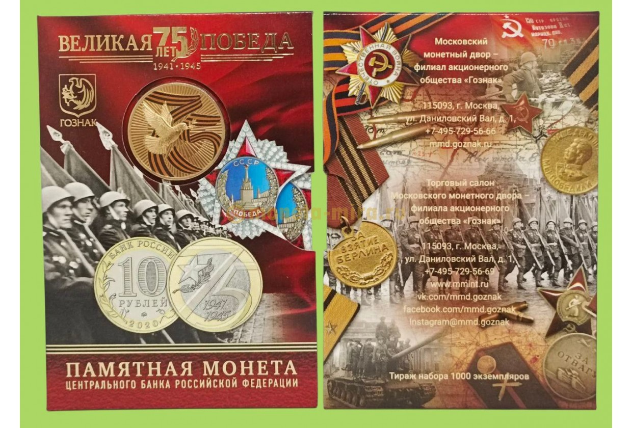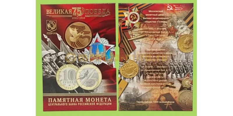 Официальный буклет с монетой 10 рублей 2020 г. 75 лет Победы с жетоном ММД
