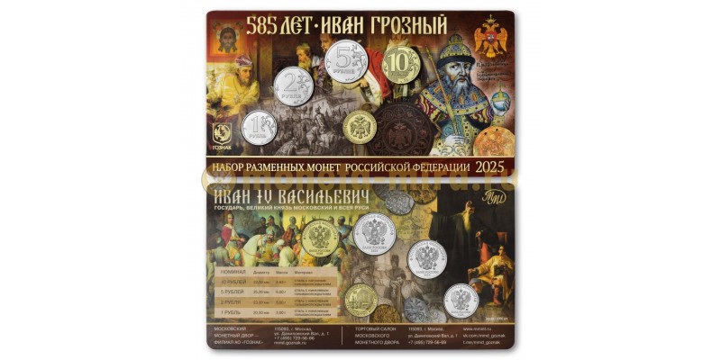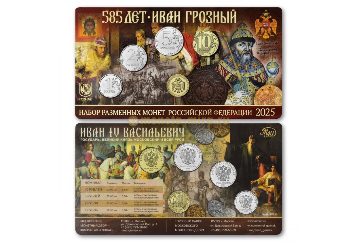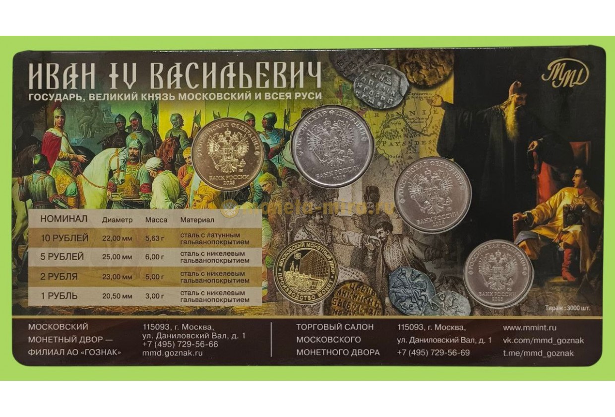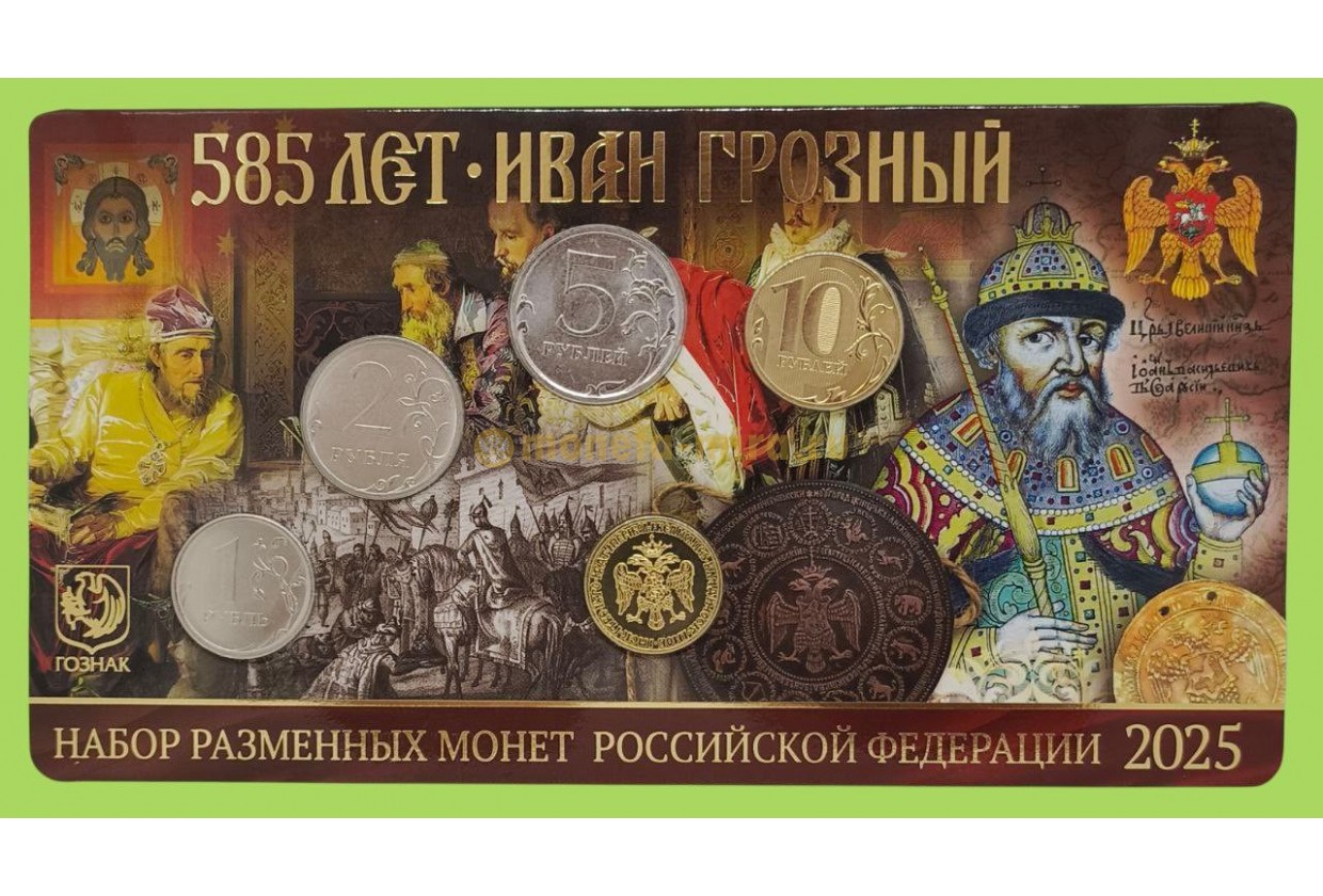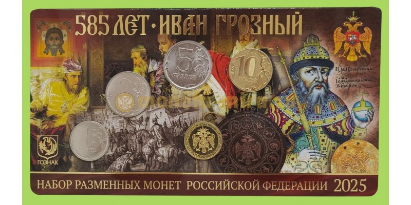Набор разменных монет 2025 г. 585 лет Ивану Грозному с жетоном ММД, латунь, в буклете