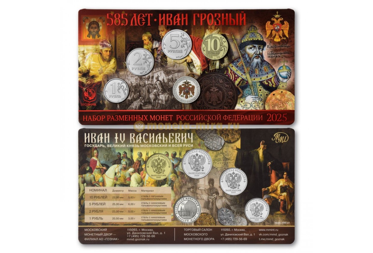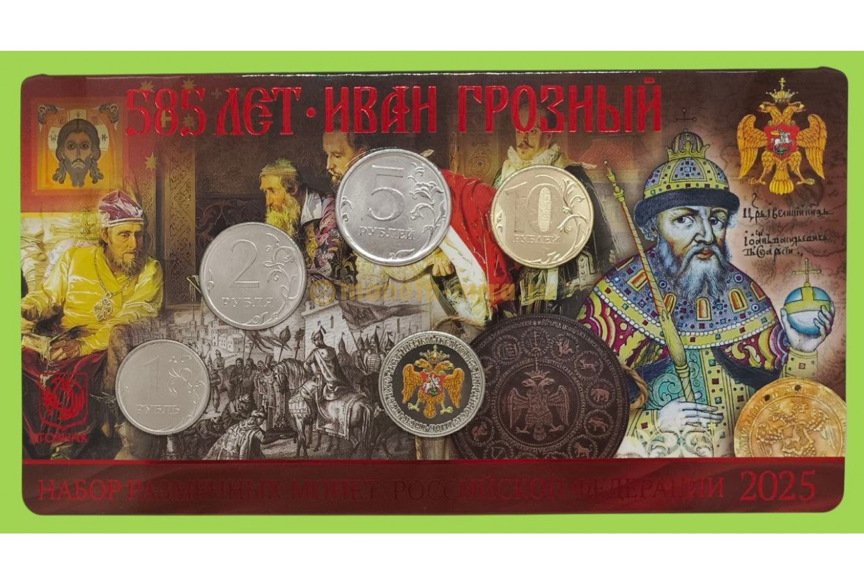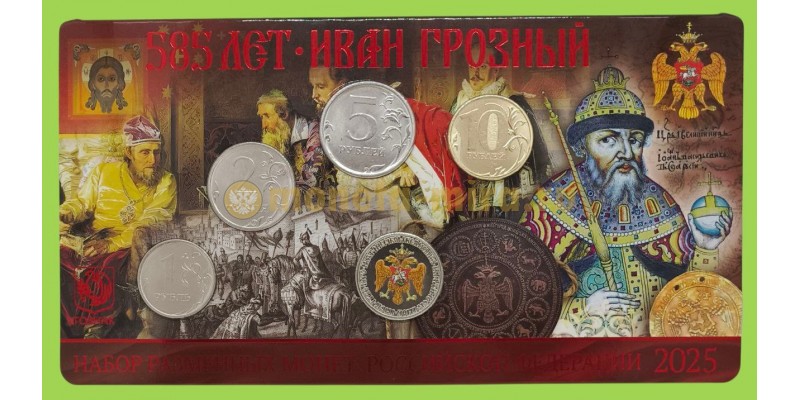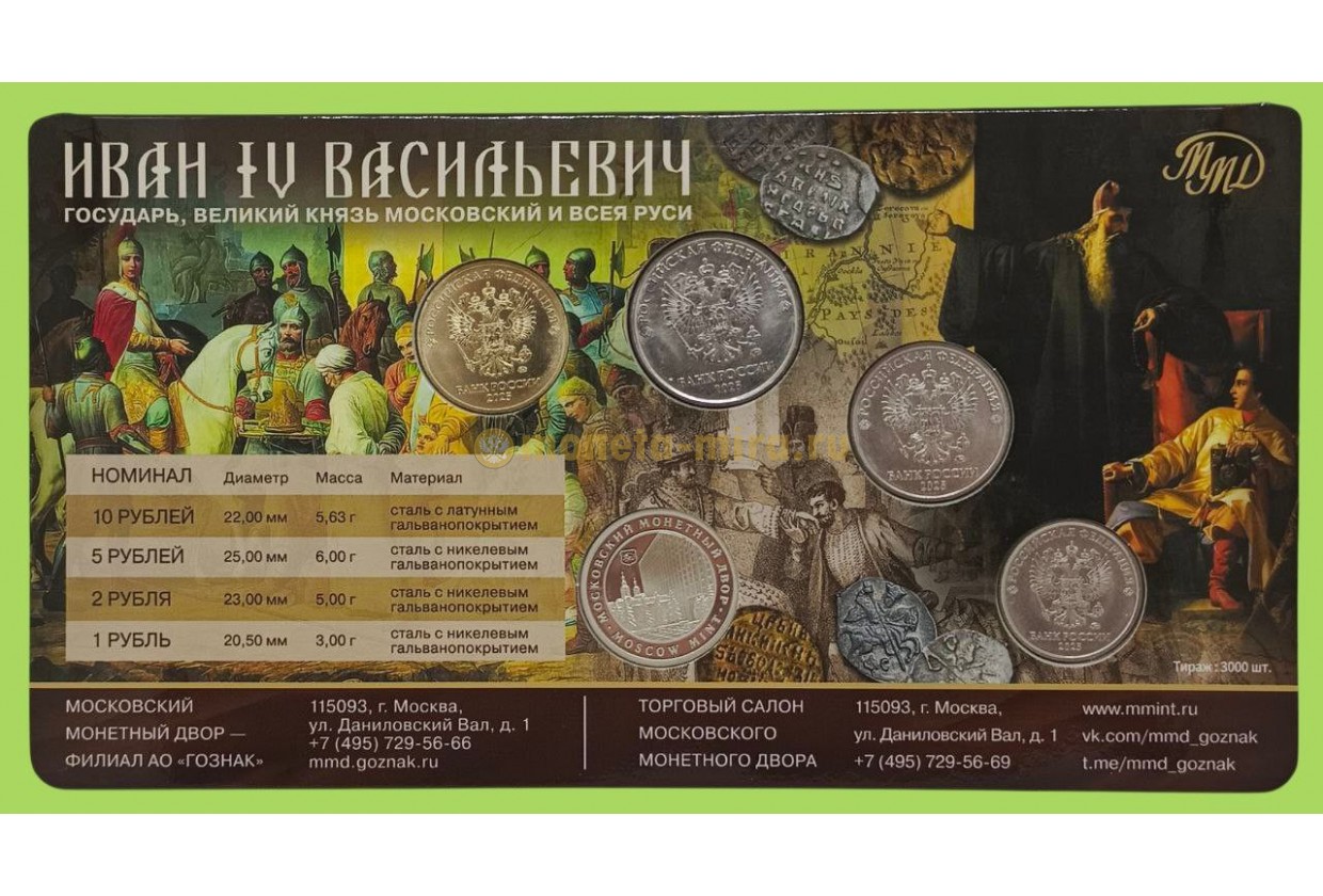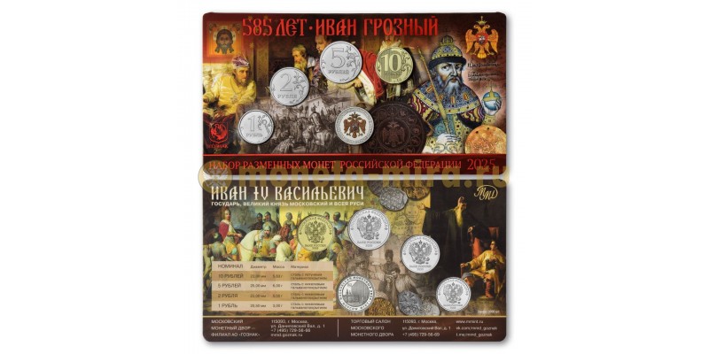 Набор разменных монет 2025 г. 585 лет Ивану Грозному с жетоном ММД, тампопечать, в буклете