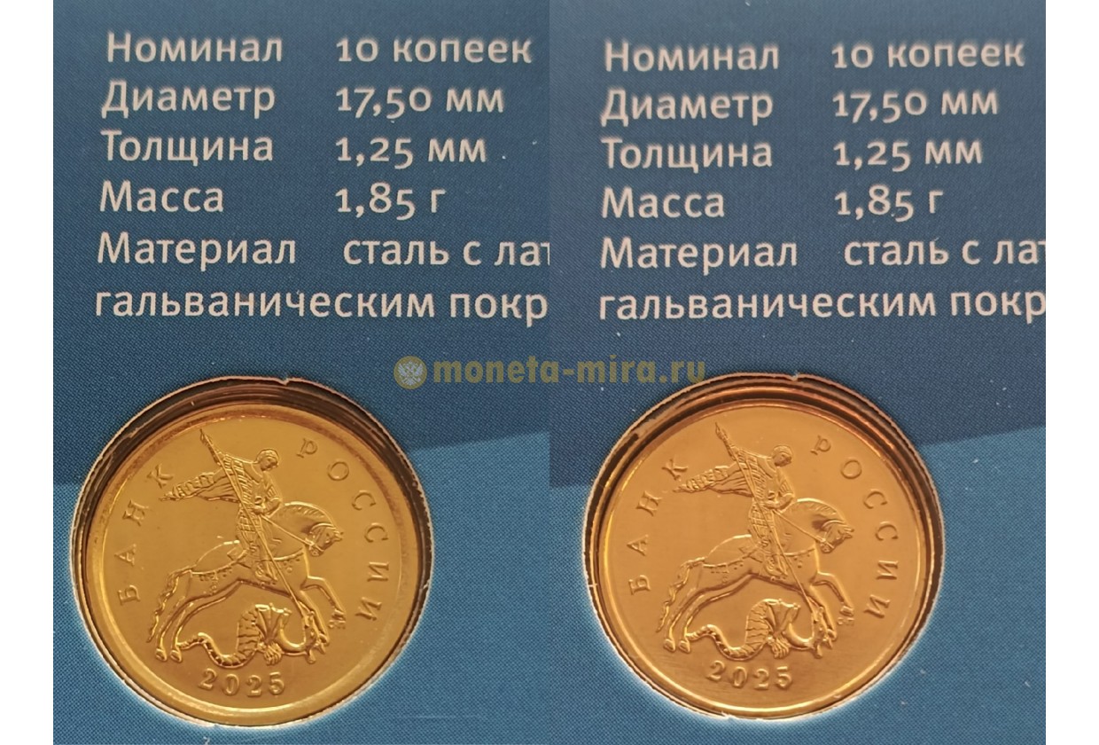 Официальный годовой набор из 8 монет РФ 2025 г. СПМД - в сувенирной упаковке, разновид 10 коп. широкий кант
