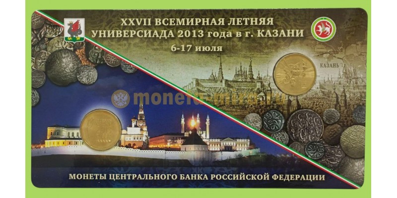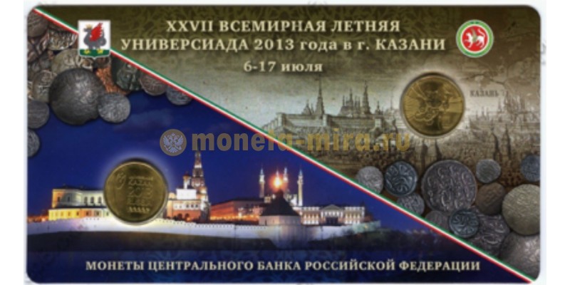 Набор из 2 монет 2013 г. Летняя универсиада в Казани 2013 в буклете, СПМД
