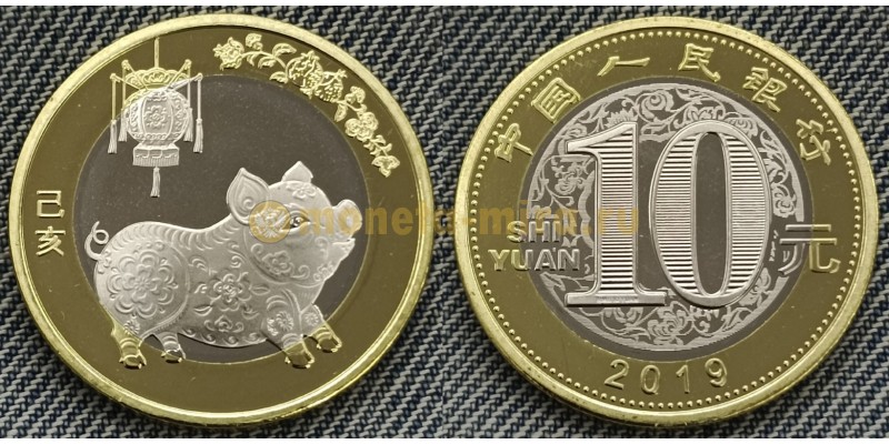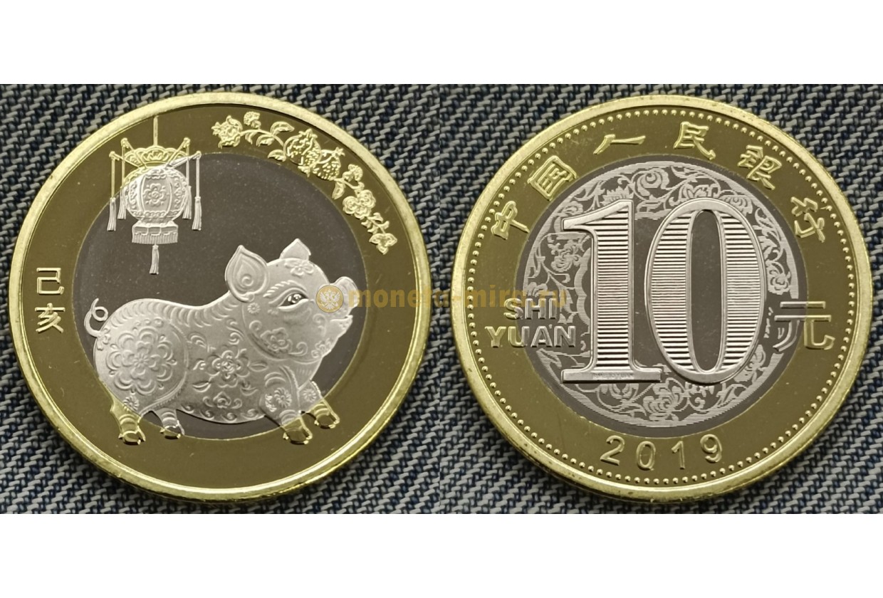 10 юаней 2019 г. год свиньи, UNC в капсуле