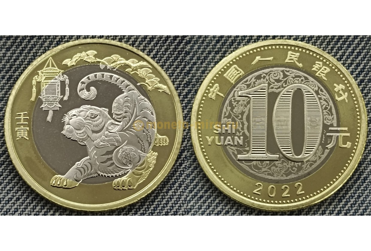 10 юаней 2022 г. год тигра - UNC в капсуле