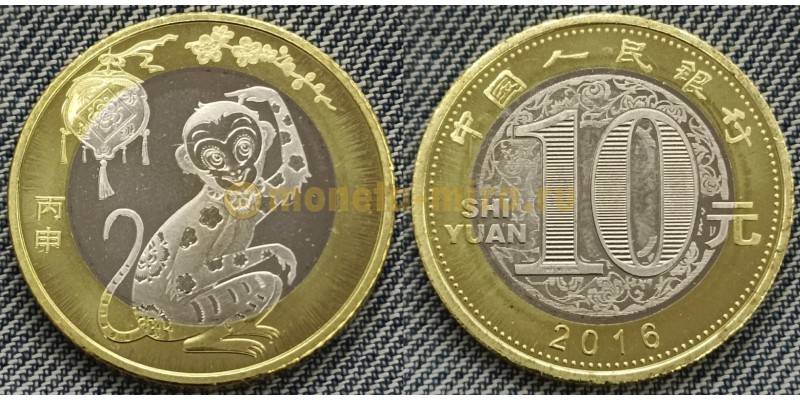 10 юаней 2016 г. год обезьяны, UNC в капсуле