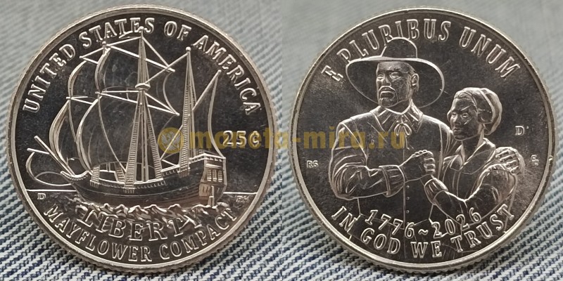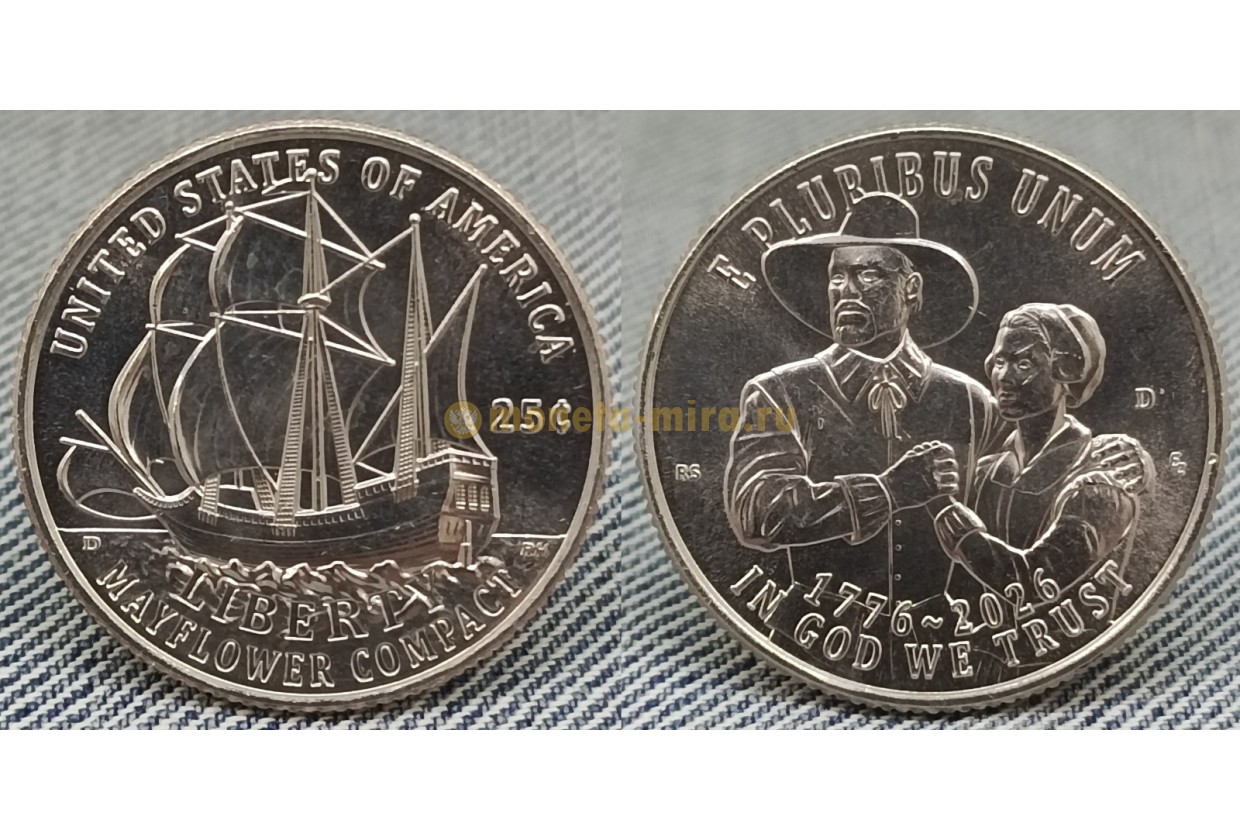25 центов США 2026 г. Мэйфлауэрское соглашение, серия 250 лет США, двор P, D выпуск №1