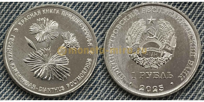 1 рубль ПМР 2025 г. Гвоздика изменчивая, серия красная книга