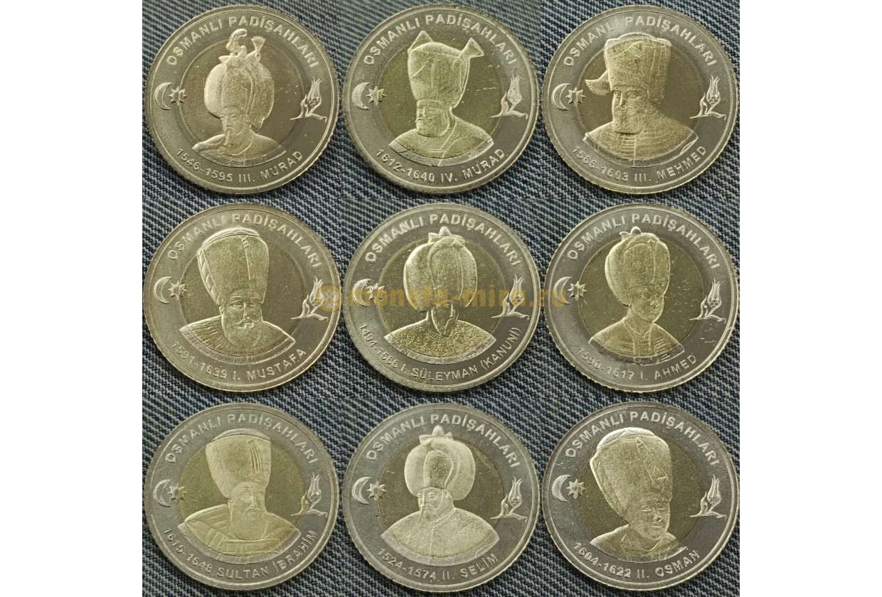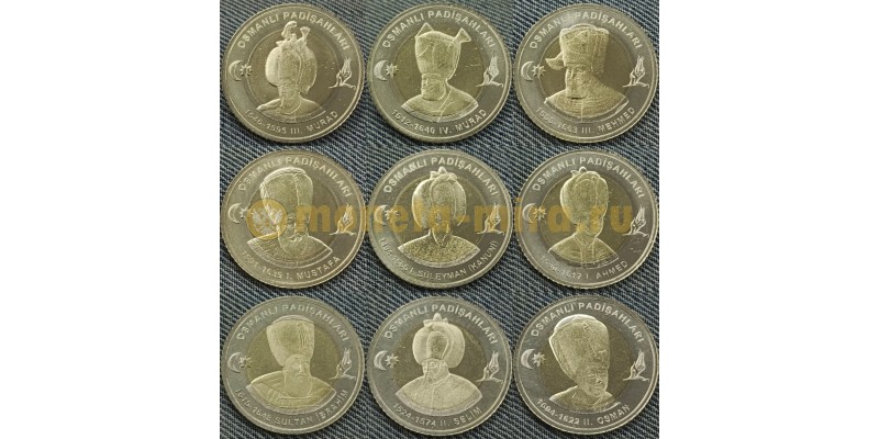 Набор из 9 монет Турция 1 лира 2025 г. Султаны Османской империи, серия №2