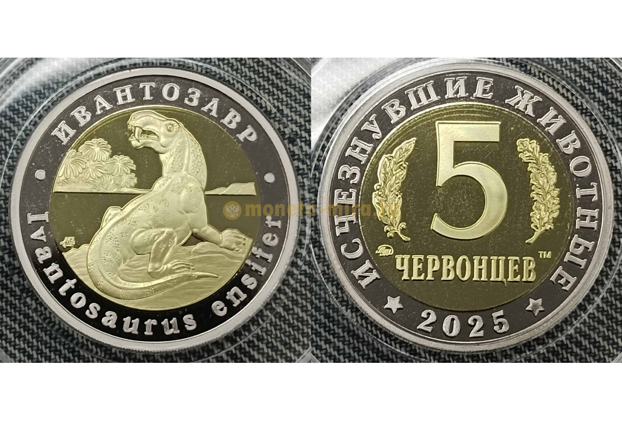 5 червонцев 2025 г. Ивантозавр, серия «Исчезнувшие животные» ММД - proof, выпуск №15