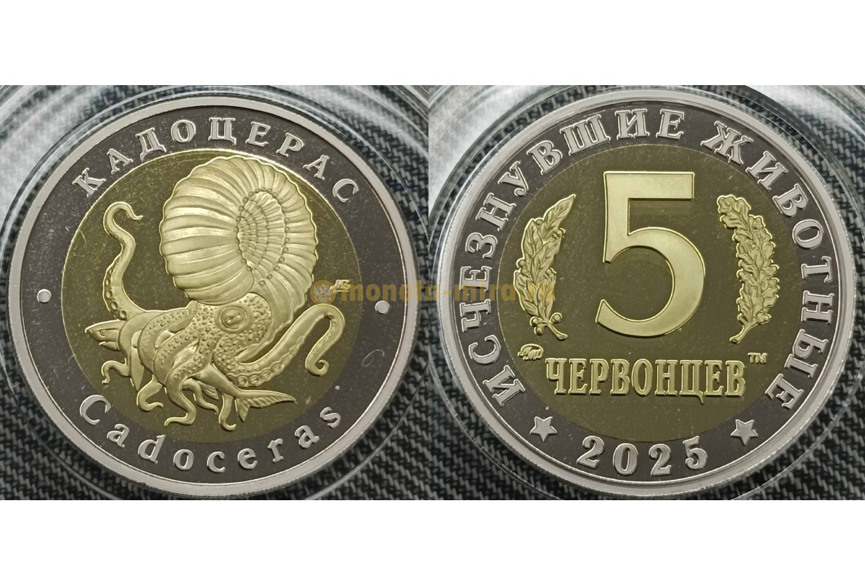 5 червонцев 2025 г. Кадоцерас, серия «Исчезнувшие животные» ММД - proof, выпуск №12
