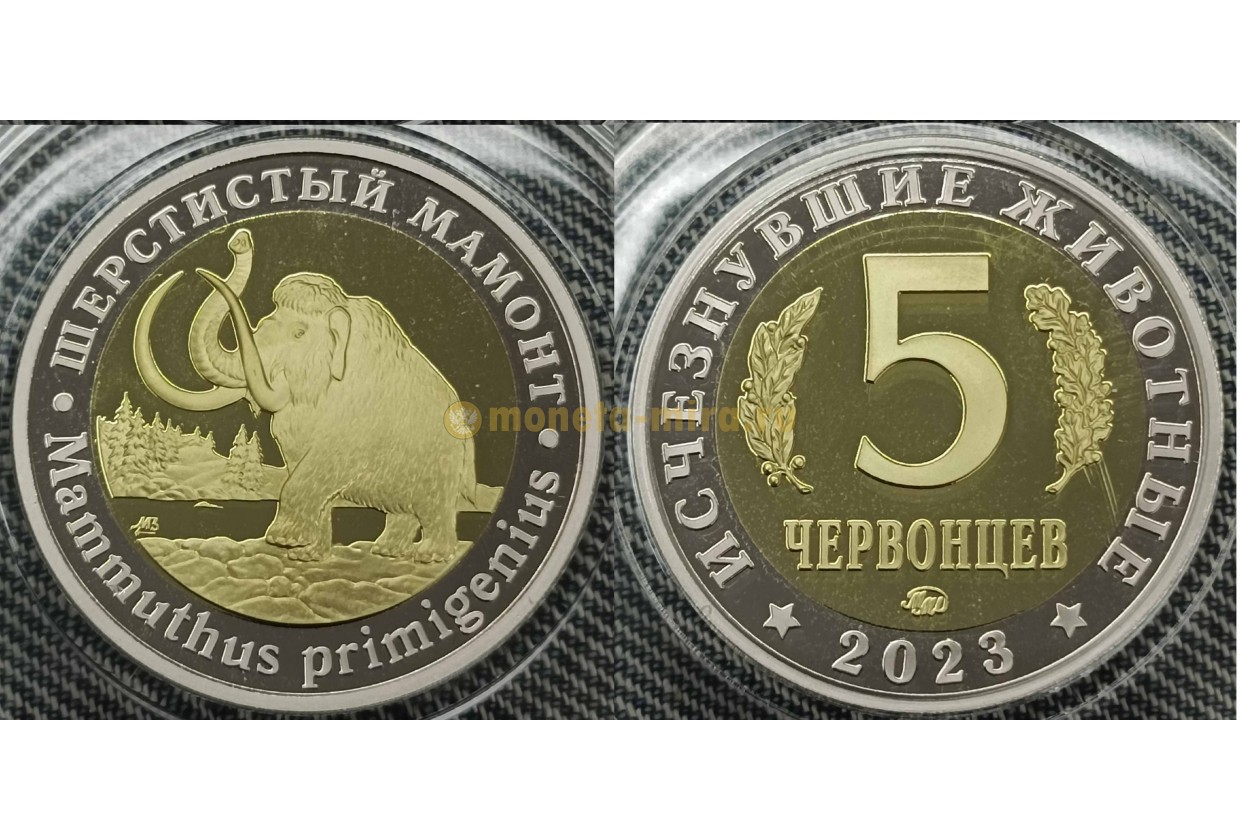 5 червонцев 2023 г. Шерстистый мамонт, серия «Исчезнувшие животные» ММД - proof, выпуск №1