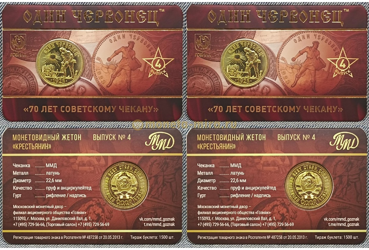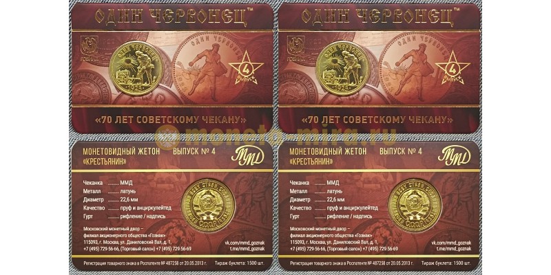 Жетон ММД 2025 г. Один червонец 70 лет советскому чекану, выпуск №4 UNC/proof - набор