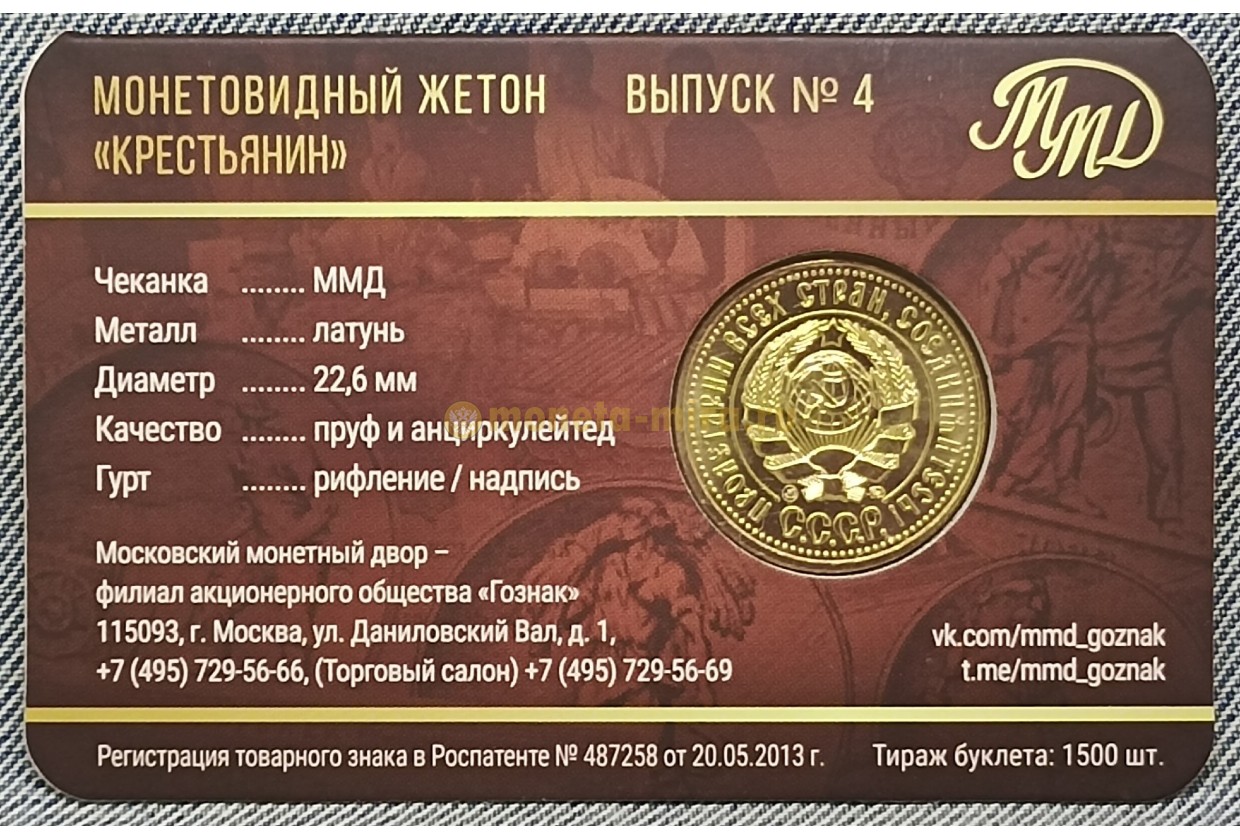 Жетон 4-й выпуск упакован в дизайнерскую открытку-блистер.