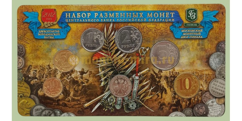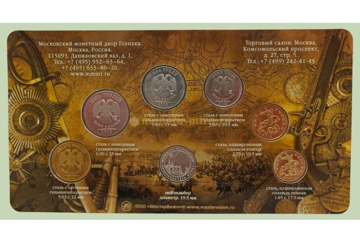 Набор разменных монет 2012 г. 200 лет Бородинской битве с жетоном ММД из нейзильбера, в буклете
