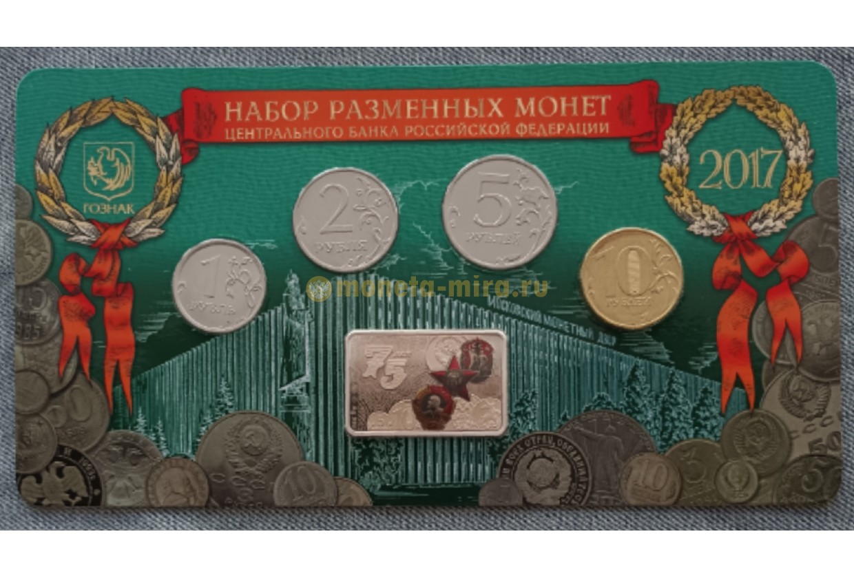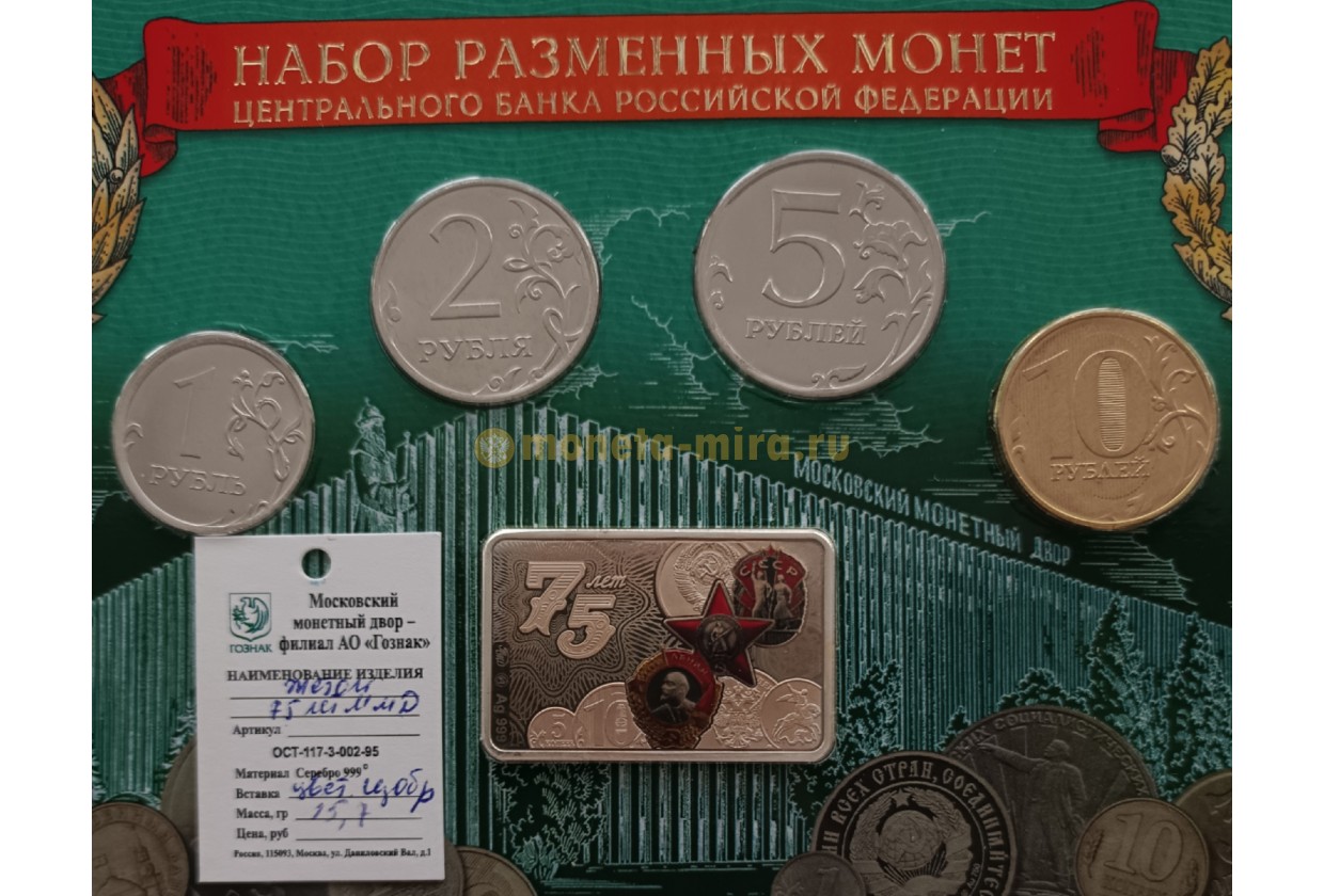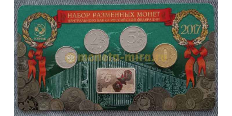 Набор разменных монет 2017 г. 75 лет ММД с плакеткой из серебра, в буклете