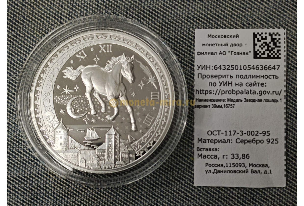 Жетон ММД звёздная лошадь, 365 поводов для радости и счастья, серебро, в футляре