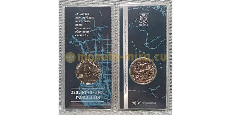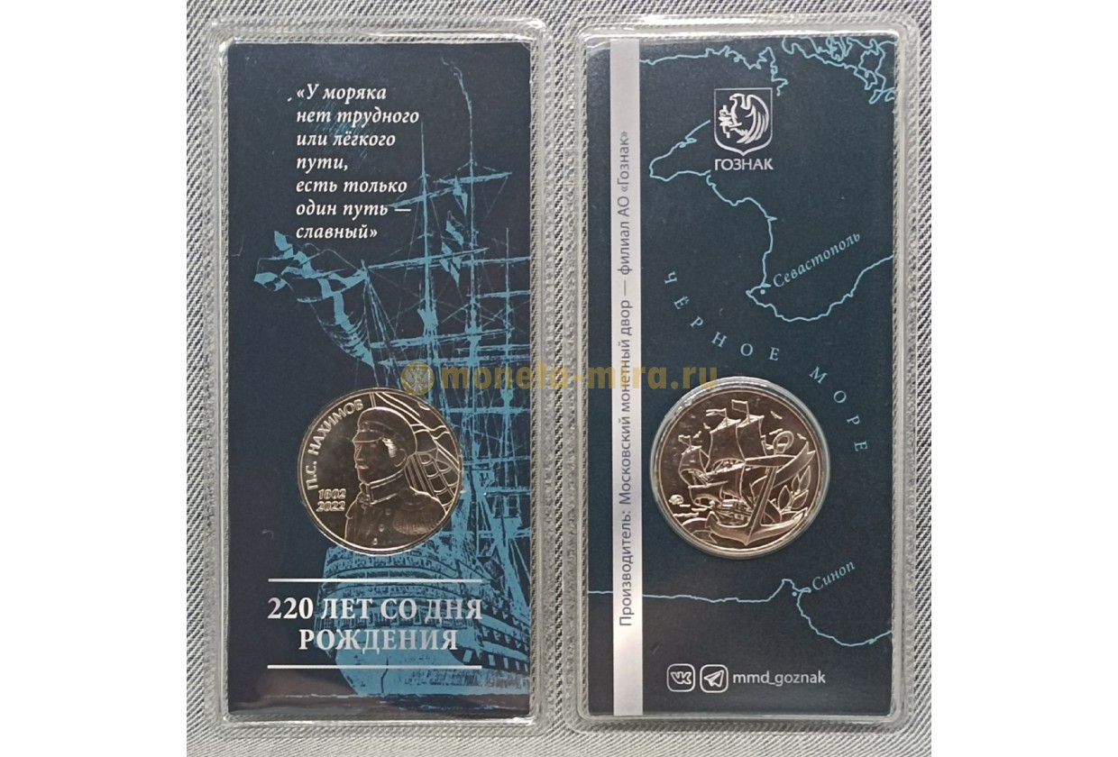 Официальный жетон Гознак 2022 г. 220 лет со дня рождения Нахимова - в блистере, ММД, выпуск №2