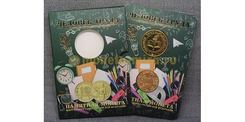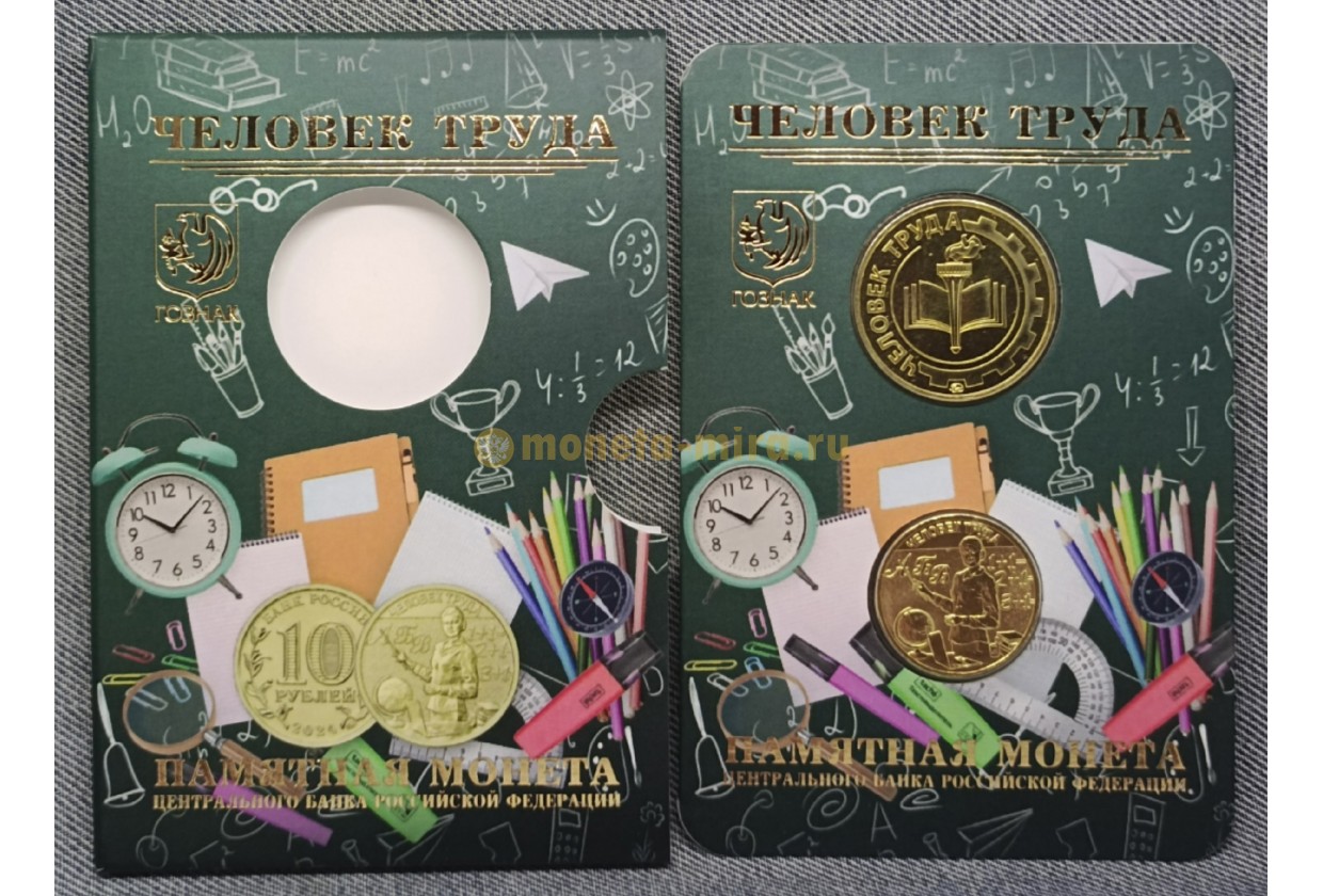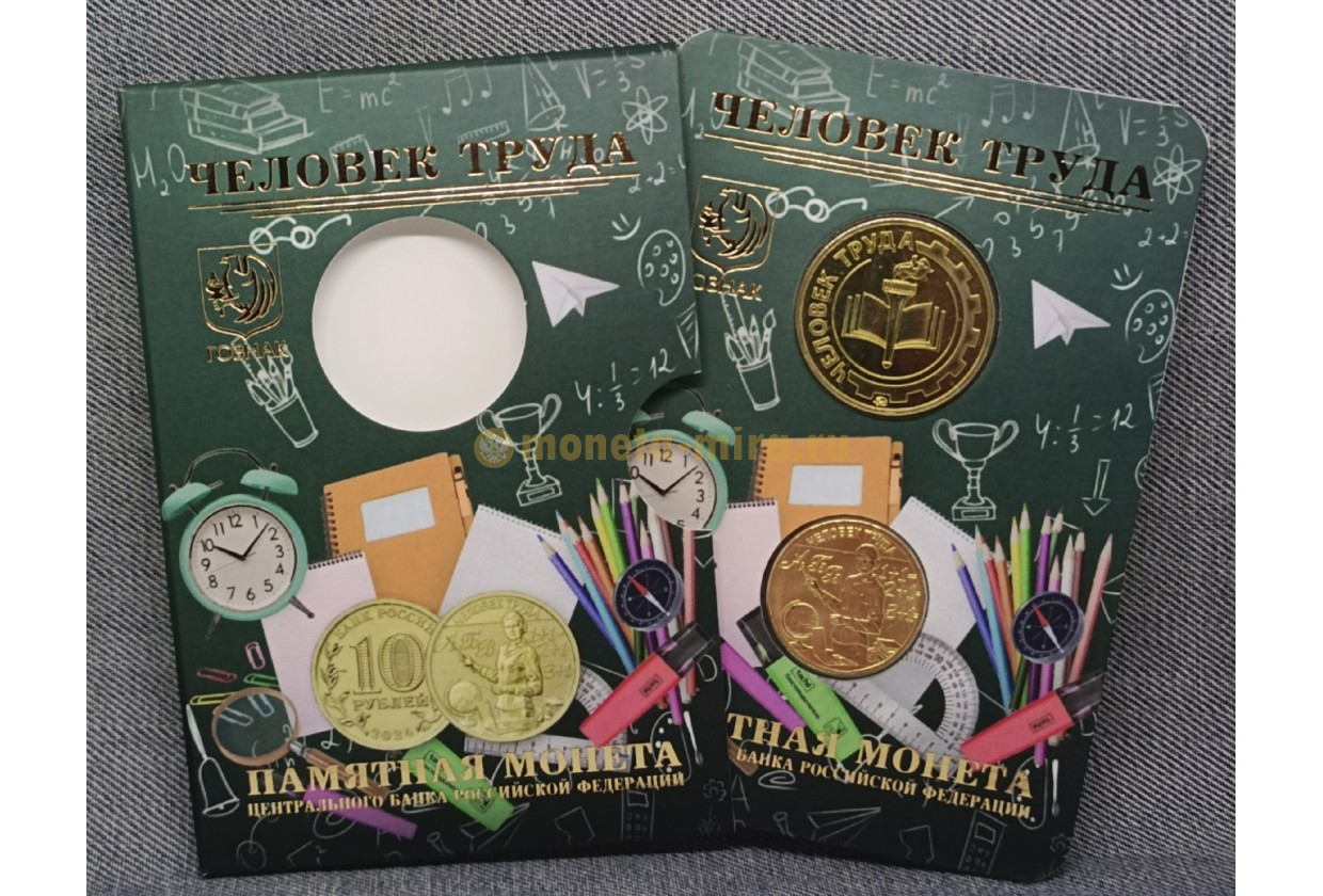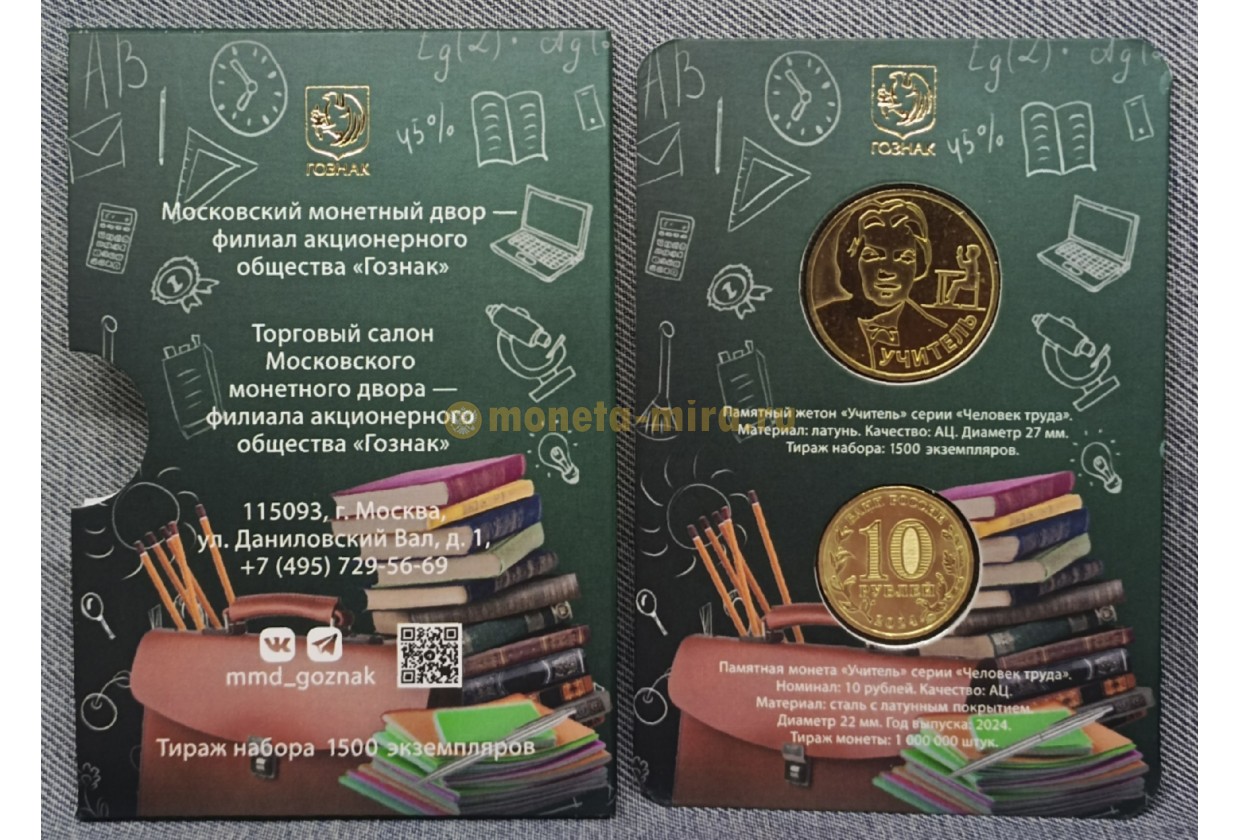 Официальный буклет ГОЗНАК с монетой 10 рублей 2024 г. Человек труда, Учитель и жетоном ММД.