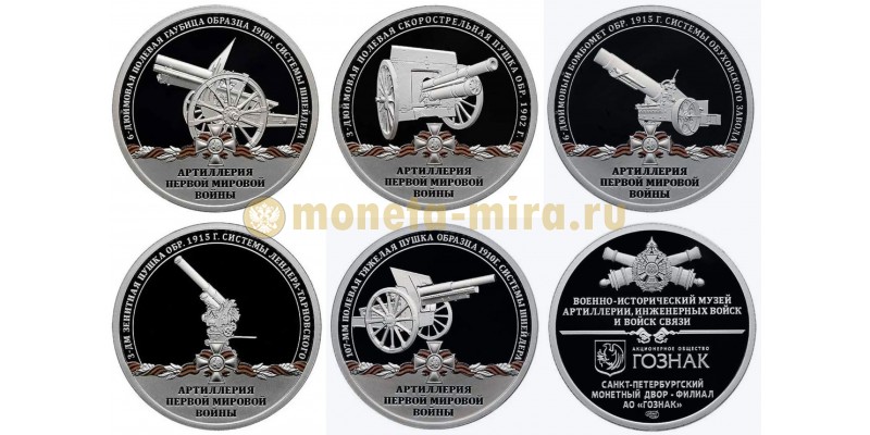 Набор из 5 жетонов СПМД 2026 г. Артиллерия Первой Мировой Войны